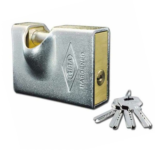 قفل كتابي گيرا کد 020 دارای یک بدنه از جنس برنج است که با روکش فولادی سختکاری شده پوشیده شده است ، میله ی قفل شونده از جنس فولاد و ضد برش است . روکش برجسته اي برای ایمنی بیشتر قفل تعبیه شده که مانع دسترسی به میله و حتی چفت های درب می شود . بدنه داخلي برنجی ضد زنگ است . دهانه قفل ٣سانتي متر و این قفل داراي ٤ كليد كامپيوتري ویژه است .