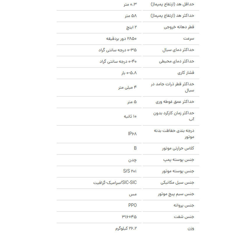 پمپ کفکش استیل مدل RH-4034، با توان 3 اسب بخار و حداکثر ارتفاع پمپاژ 58 متر، برای کاربردهای خانگی و باغبانی طراحی شده است. موتور این پمپ دارای درجه حفاظت IP68 و کلاس حرارتی B است تا عمر مفید و مداومت کاری بالایی داشته باشد. استفاده از سیل مکانیکی سرامیک-گرافیت گرافیت با فیسهای آببندی سیلیکون کاربید، پروانه PPO و پمپ چدنی باعث افزایش کارایی و مقاومت دستگاه در شرایط مختلف شده است. پمپ کفکش RH-4034 توانایی پمپاژ سیالات تا 9 متر مکعب بر ساعت را دارد و برای سیالات تمیز، عاری از مواد جامد و غیر ساینده، مناسب است. قابلیت غوطهوری کامل تا عمق 5 متر، همراه با فلوتر خودکار برای کنترل سطح سیال، از دیگر ویژگیهای مهم این پمپ کفکش است. این پمپ با وزن 26,2 کیلوگرم و طراحی کارآمد، برای تخلیه آب از استخرها، مخازن و همچنین آبیاری باغها و محوطهها بسیار مناسب است. استفاده از سیمپیچ مسی و شفت استیل 316+45 نیز نشاندهنده کیفیت ساخت بالای این محصول است.
