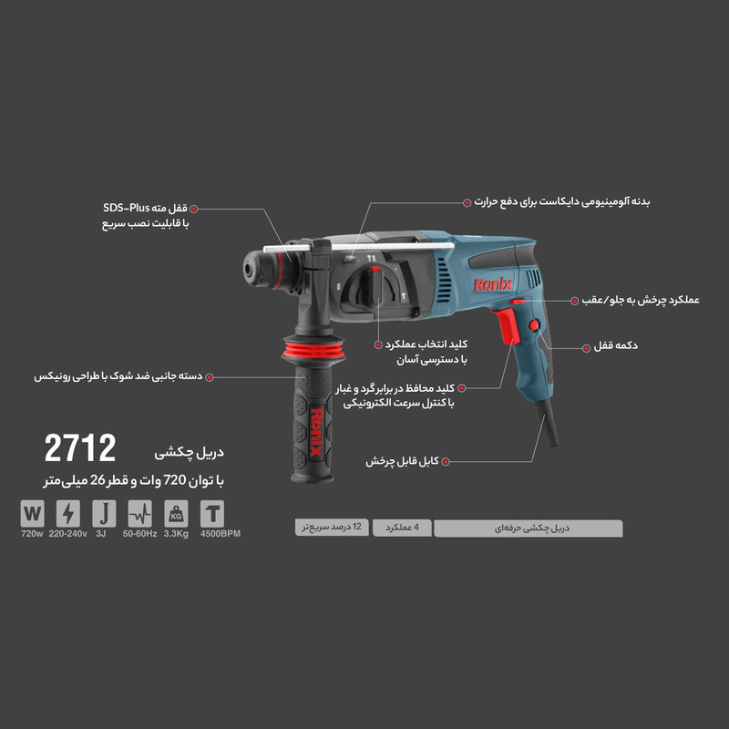 طراحی ارگونومیک و جمع و جور برای استفاده راحت در کاربریهای طولانی مدت و دارای روکش لاستیکی بر روی دسته برای کاهش خستگی کاربر و مجهز به سیستم پیشرفته کلاچ ایمنی جهت محافظت بیشتر از دست کاربر در هنگام استفاده روی سطوح بسیار متراکم